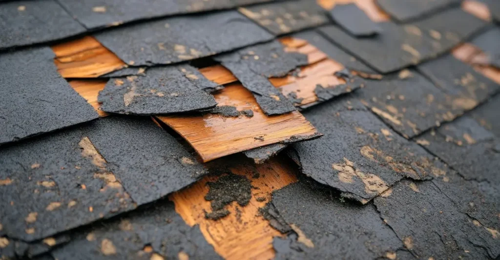 Lifted shingles on the wind-facing slope